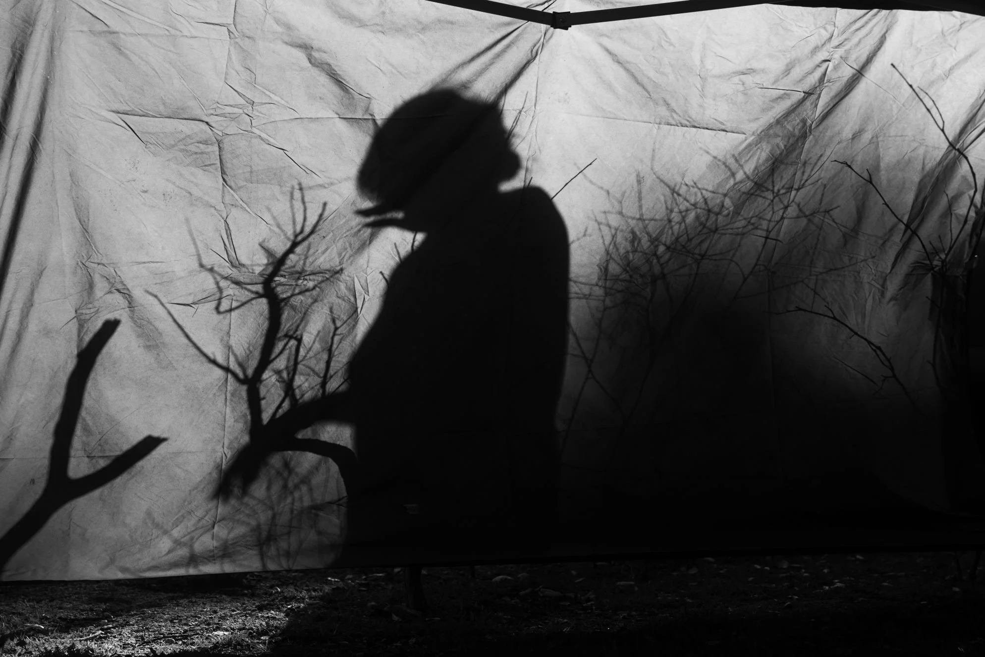 This piece is a mixed-media installation that combines projected light and found natural materials to cast shadows onto the canvas as the primary visual element. This artwork engages in performance, the shifting canvas providing dynamism to the piece, prioritizing the importance and interplay of natural forces. The piece explores the liminal space between movement and stillness, capturing the interstitial time that occurs when the wind rustles the immeasurable number of tree branches into complex configurations. The use of projected light and found natural materials to cast shadows mirrors the fleeting nature of thought and the moments of clarity that arise in the impermanence. The interplay of light and form invites contemplation on transience and the ethereal nature of passing time where specters of movement become symbols for the elusive nature of thought.
