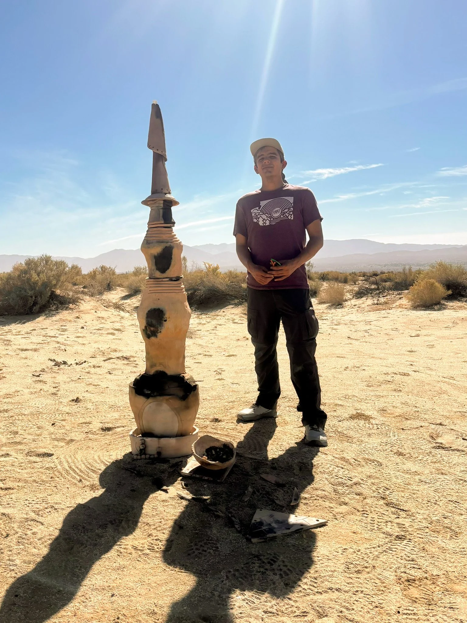As a unified totem enmeshed in the vastness of the desert, the work completes its arc. It stands as a testament to the human transformation, its form complementing the landscape while reaching beyond it.